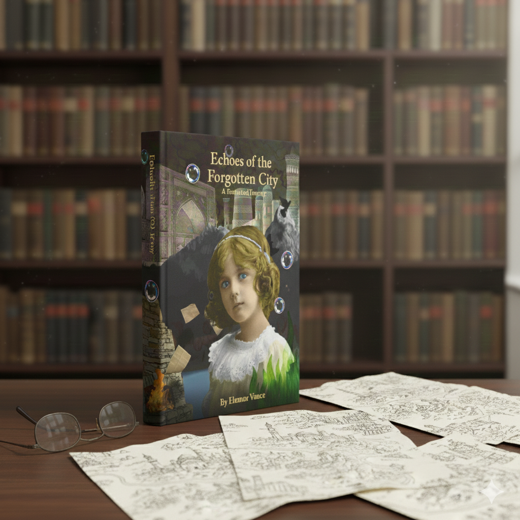 To reinforce the mood, I added darkened vignette corners, giving the final image the feel of an old, rediscovered story. I painted seaweed and adjusted its hue and opacity to create a muted, dreamlike texture. For the finishing touches, I shifted the background and building colors toward an aged, rusty palette, enhancing the atmosphere of nostalgia.